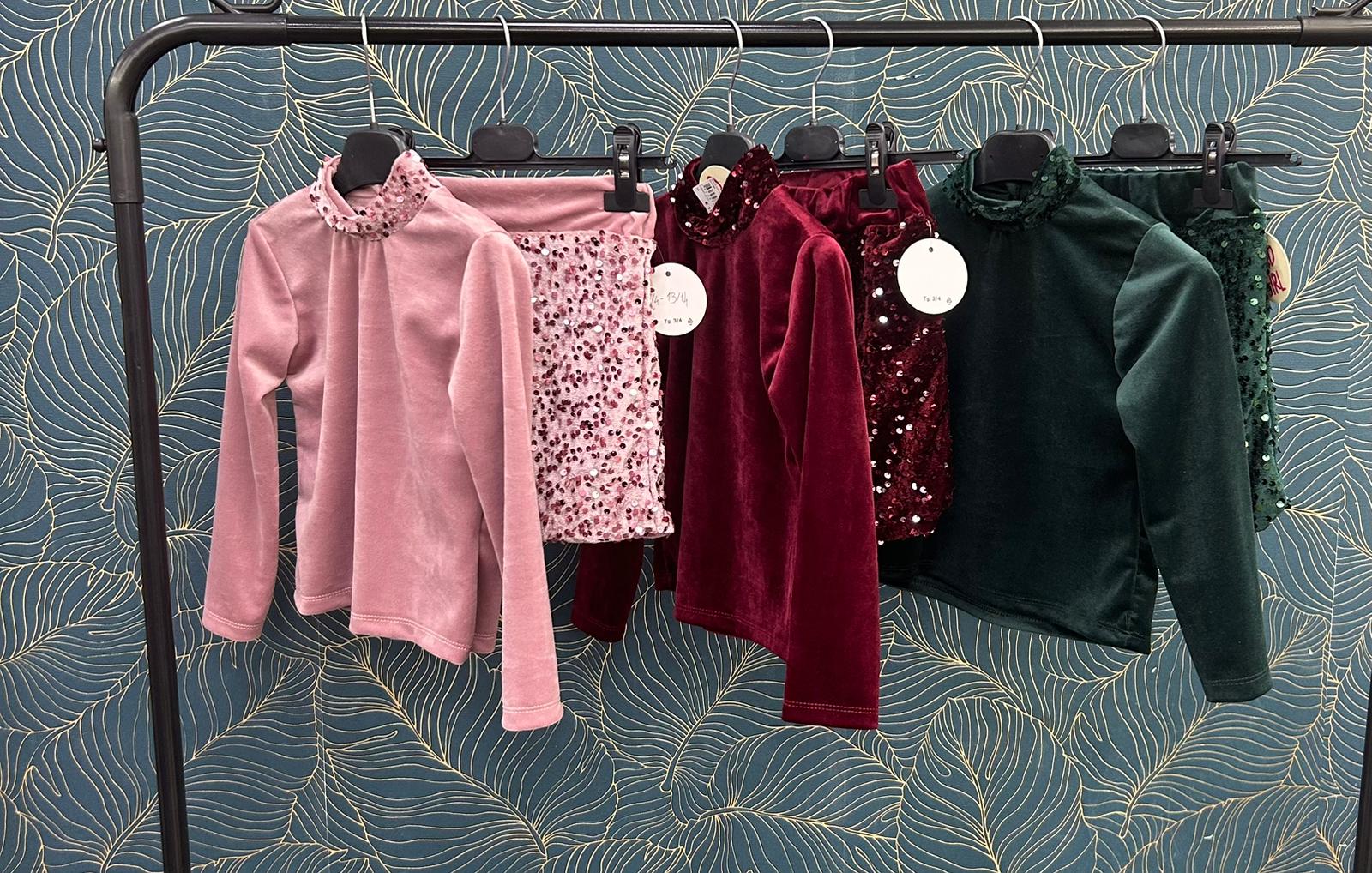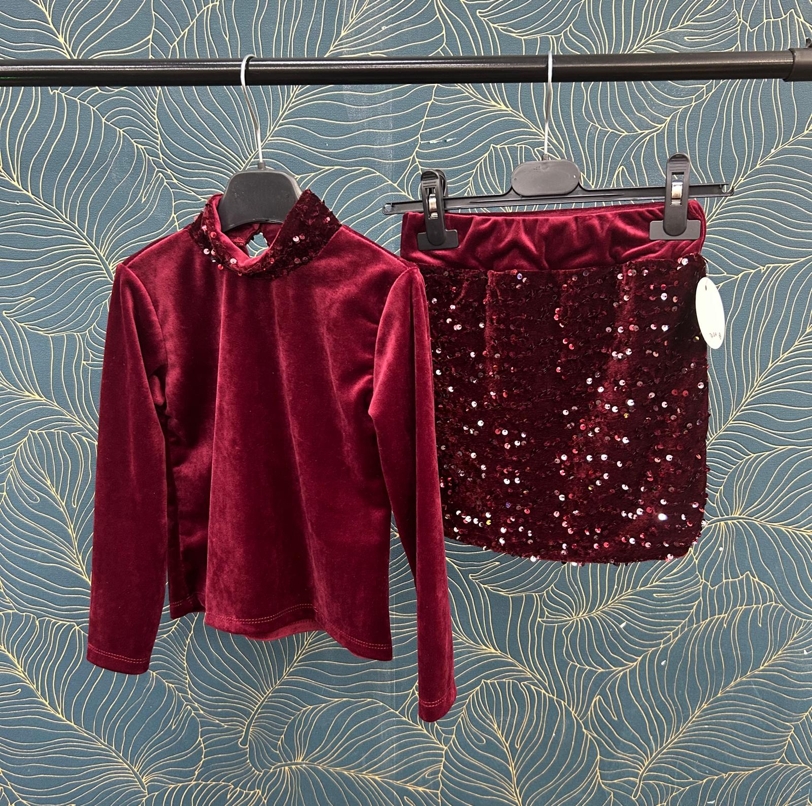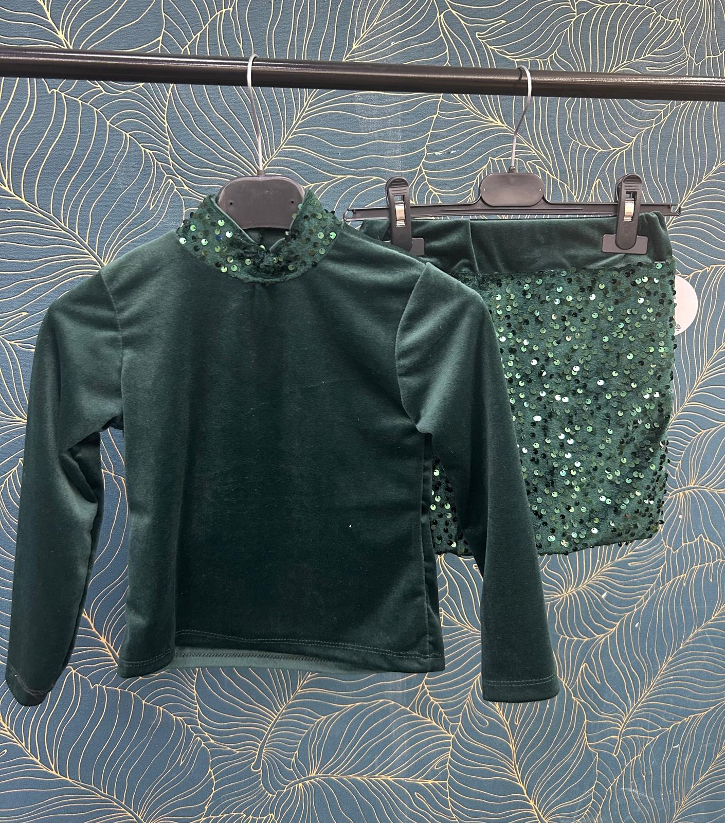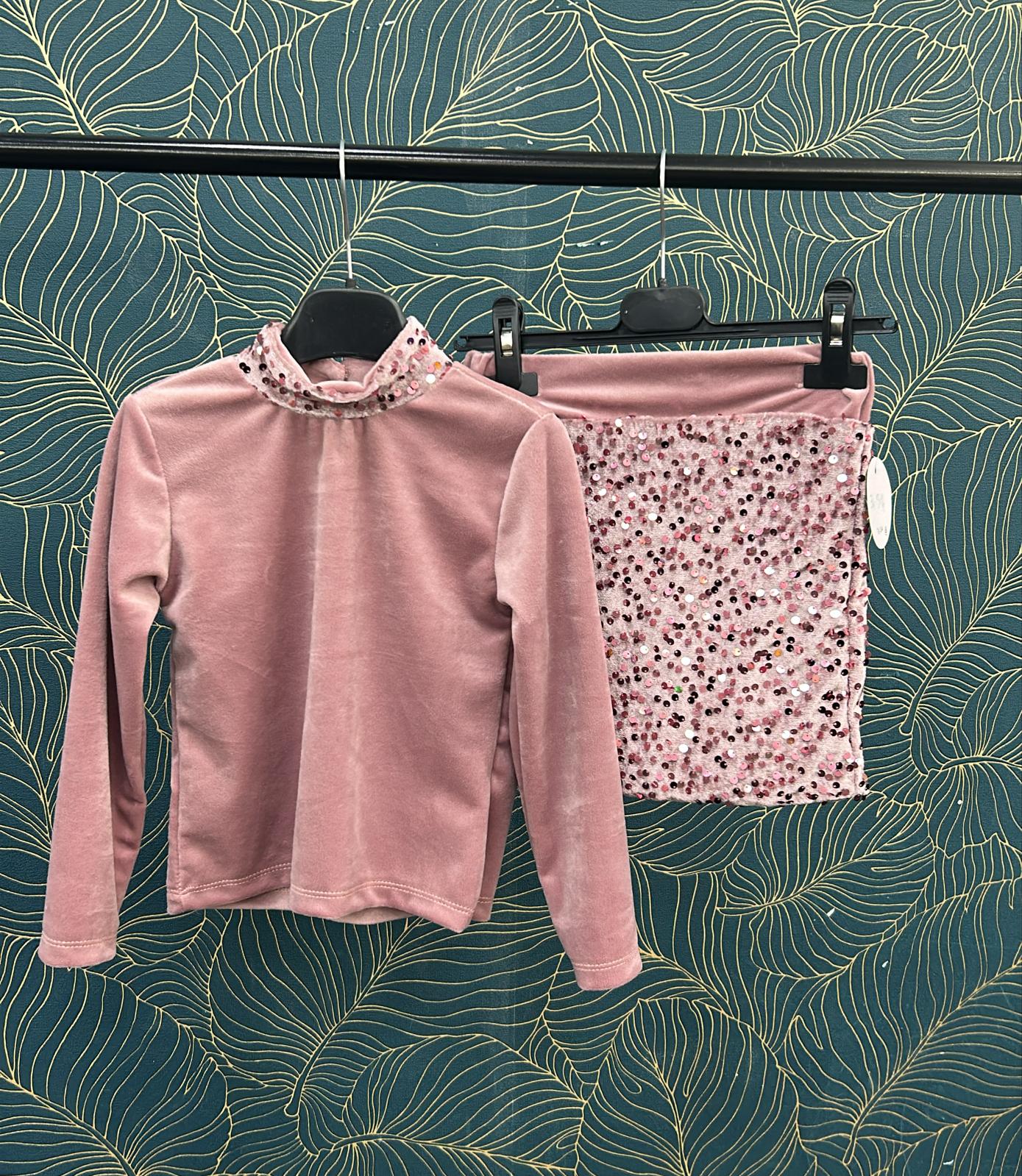 Completo bimba con gonna in pailettes, magliettina in velluto con pailettes sul colletto