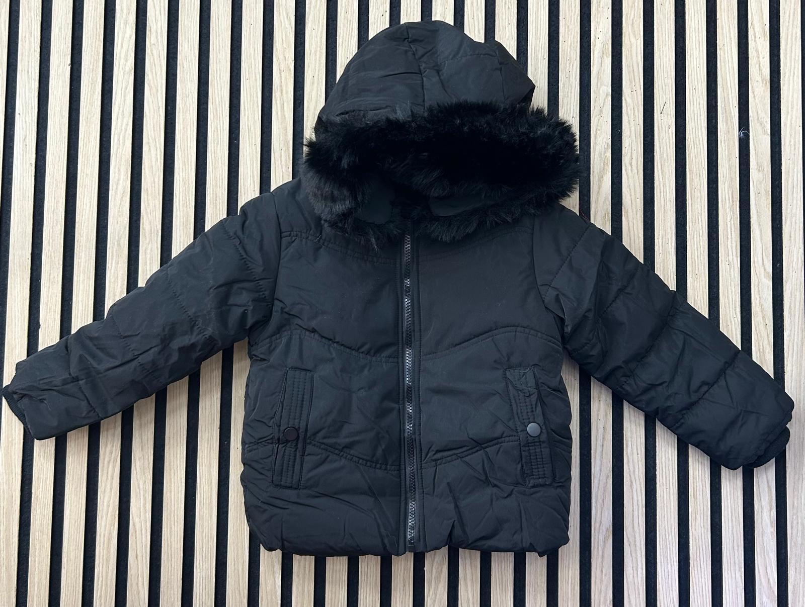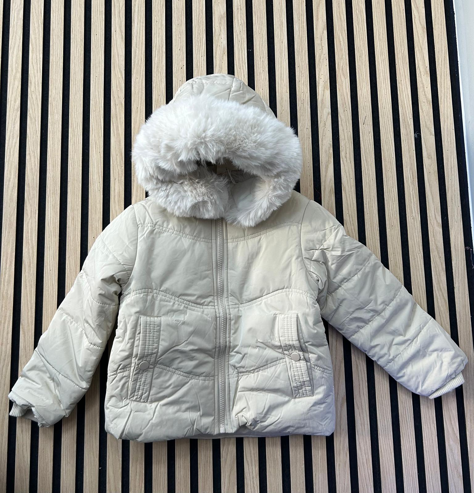 Giubbino bimba con morbida pelliccia all'interno e pelliccia removibile sul cappuccio, con polsini e tasche con bottoncino
