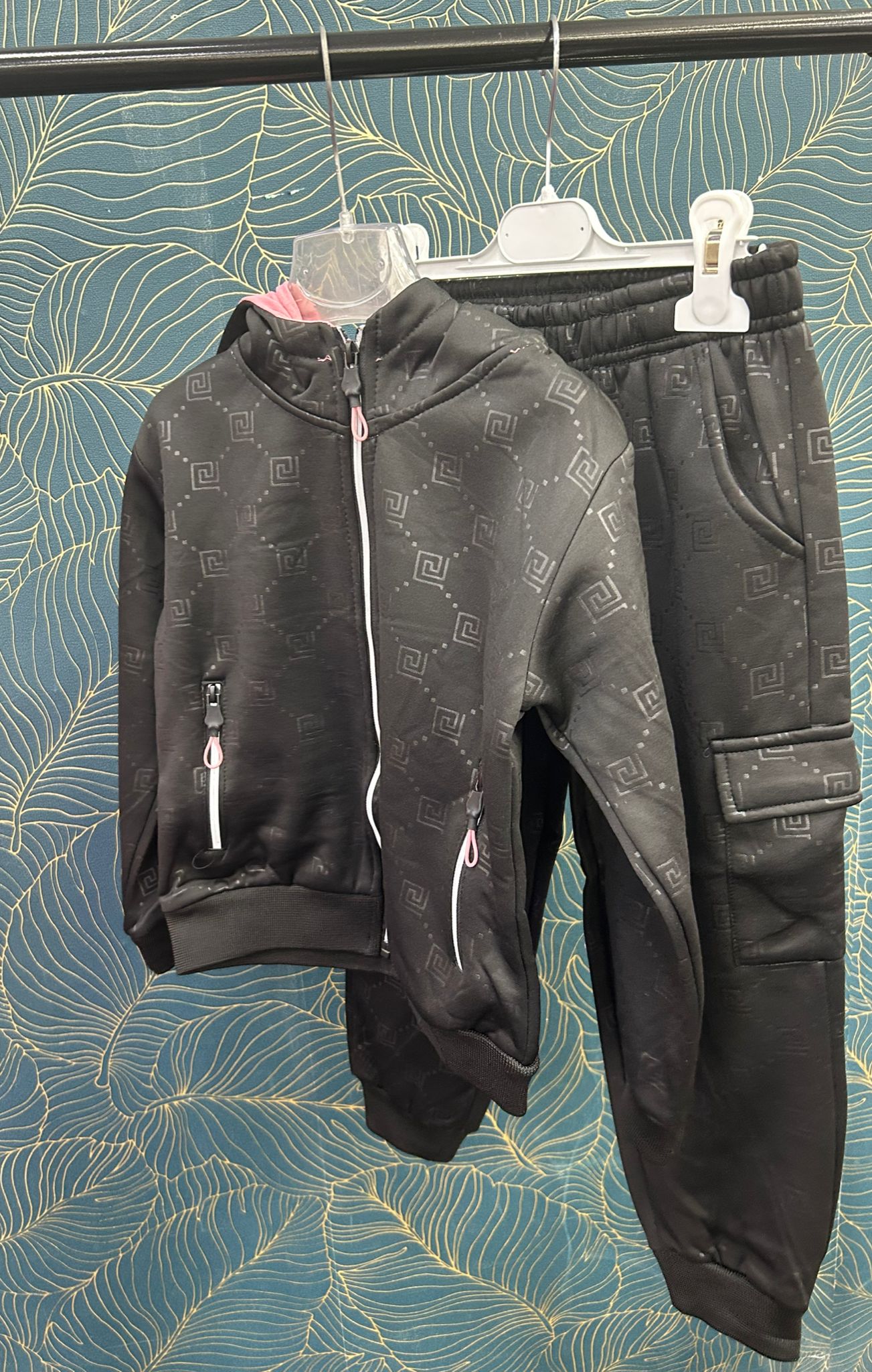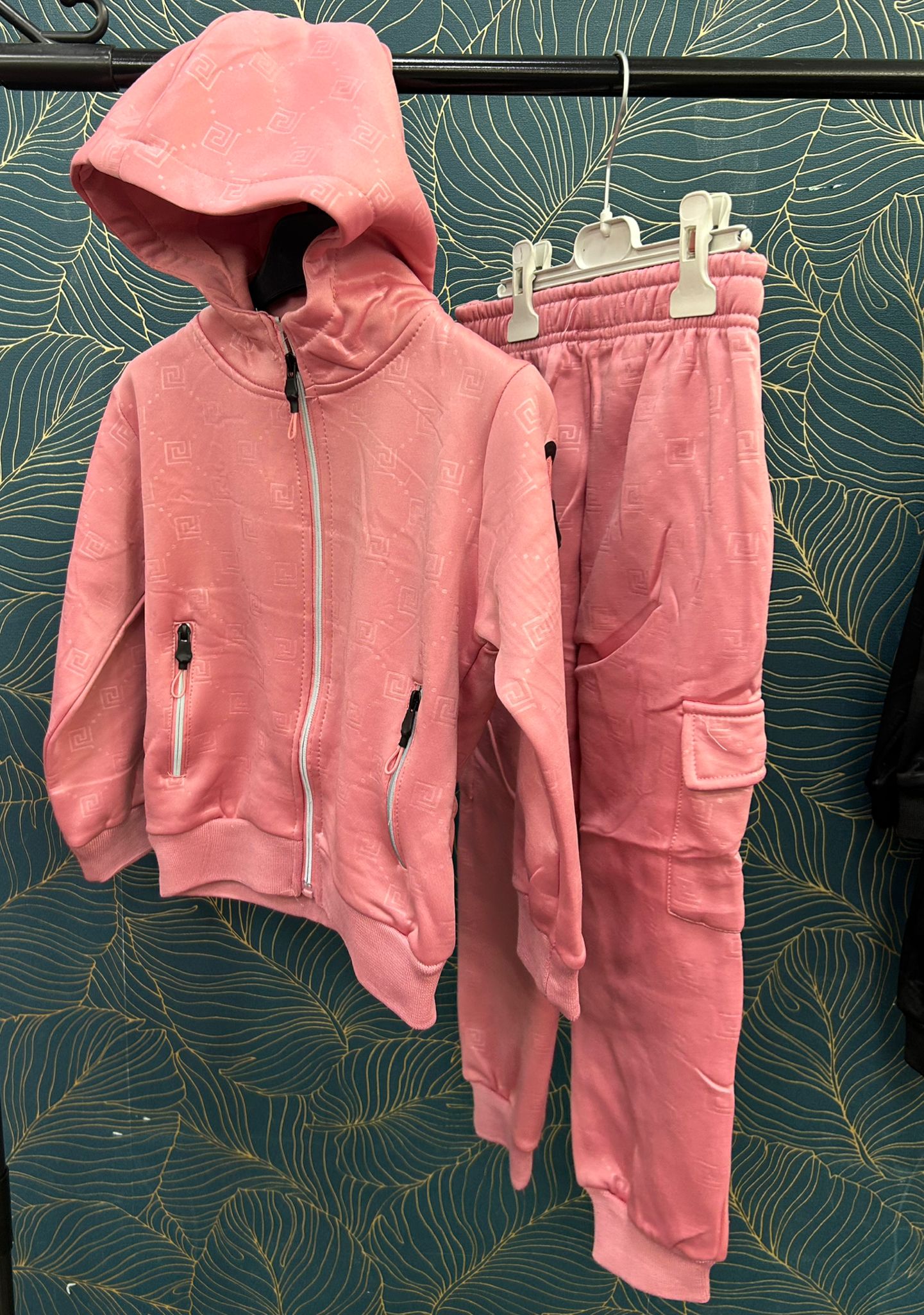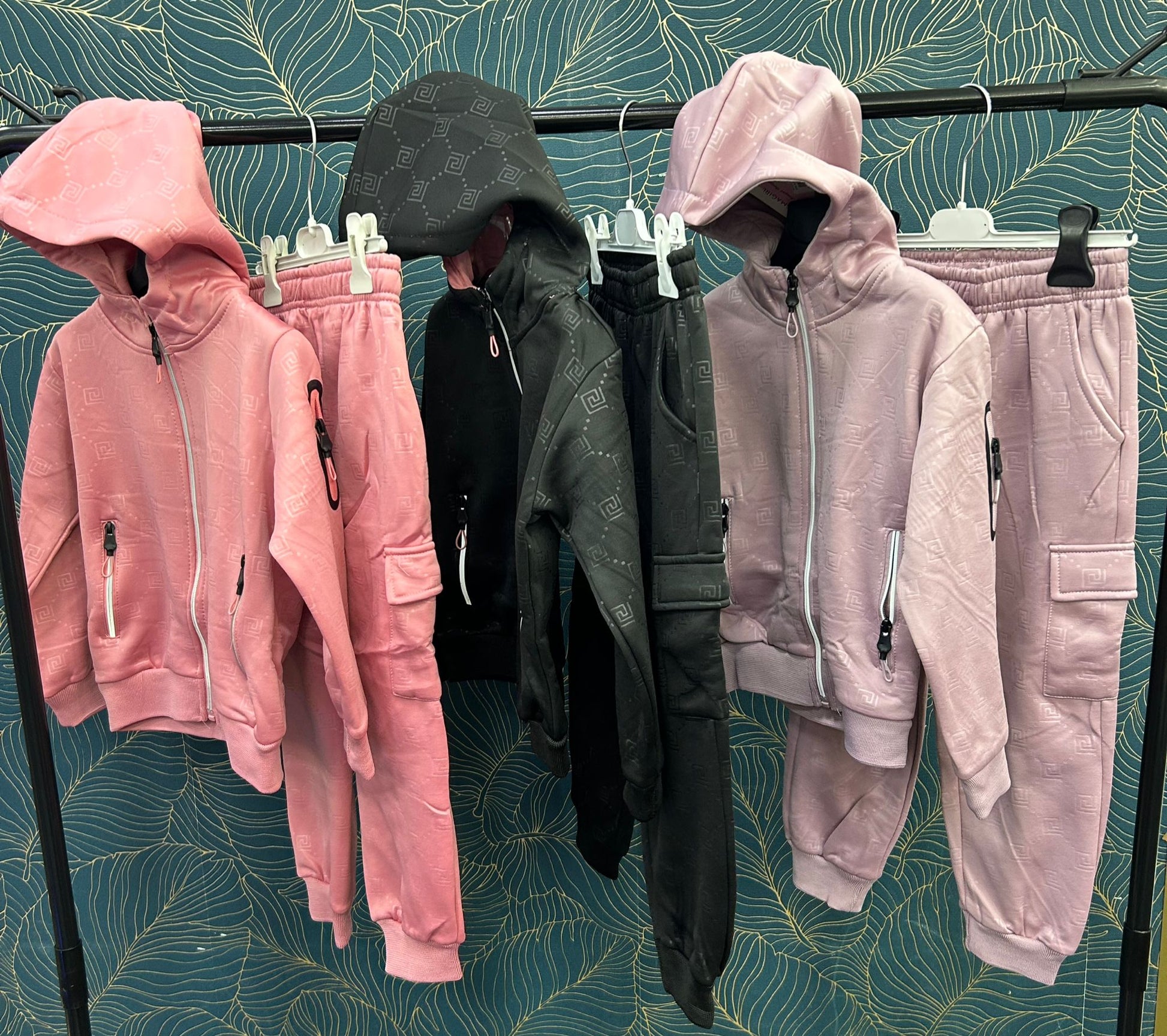 Tuta bimba con cappuccio e cerniera,pantalone modello cargo caldo cotone