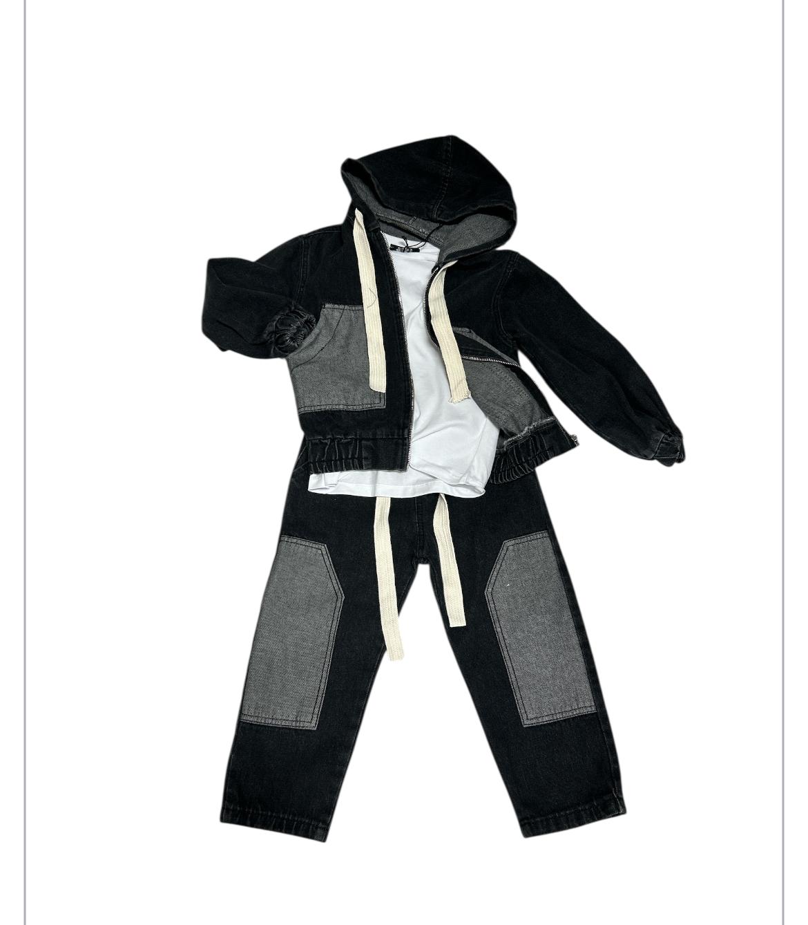 Completo bimbo con t shirt mezza manica giubbinetto jeans con cerniera e jeans