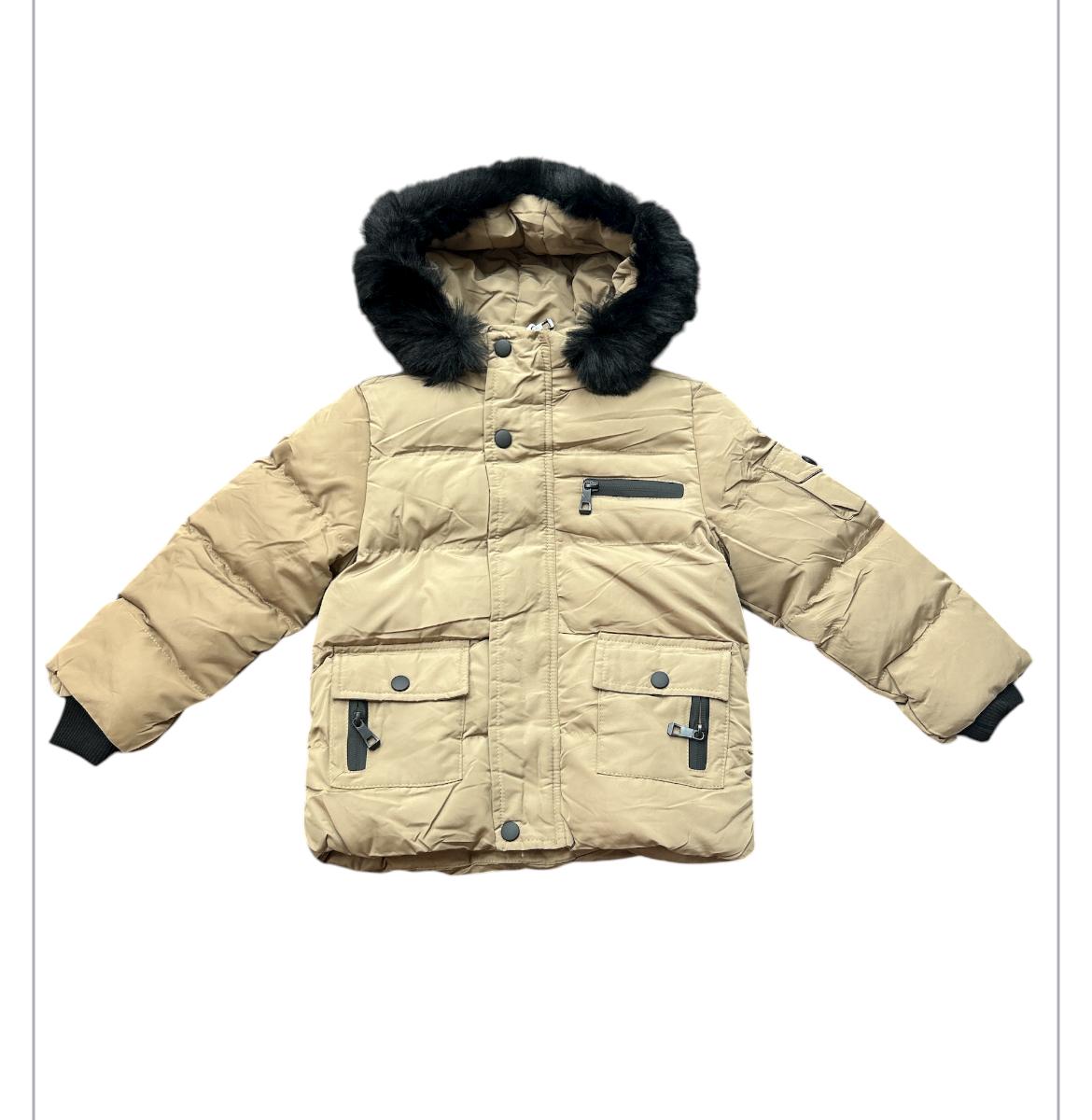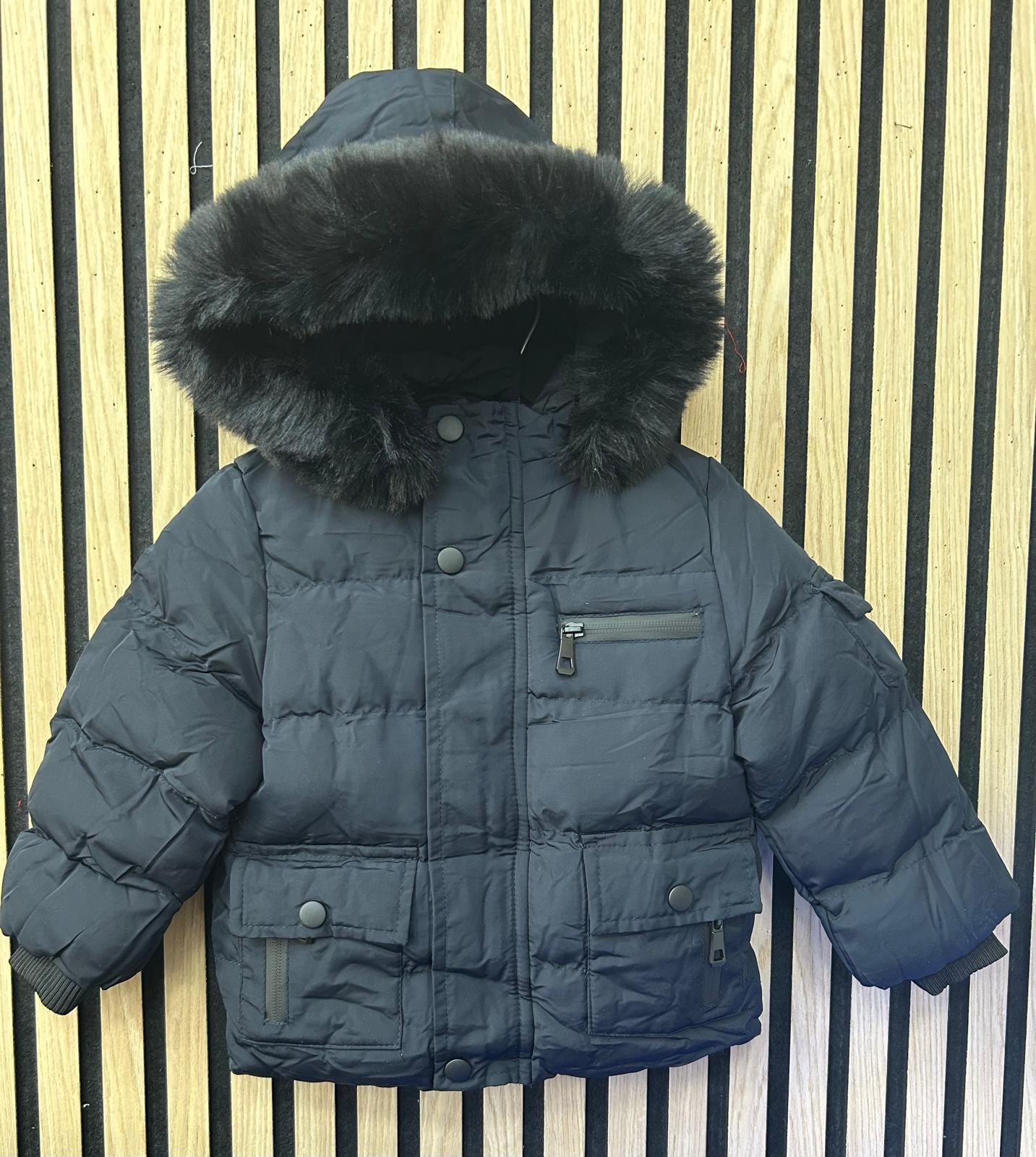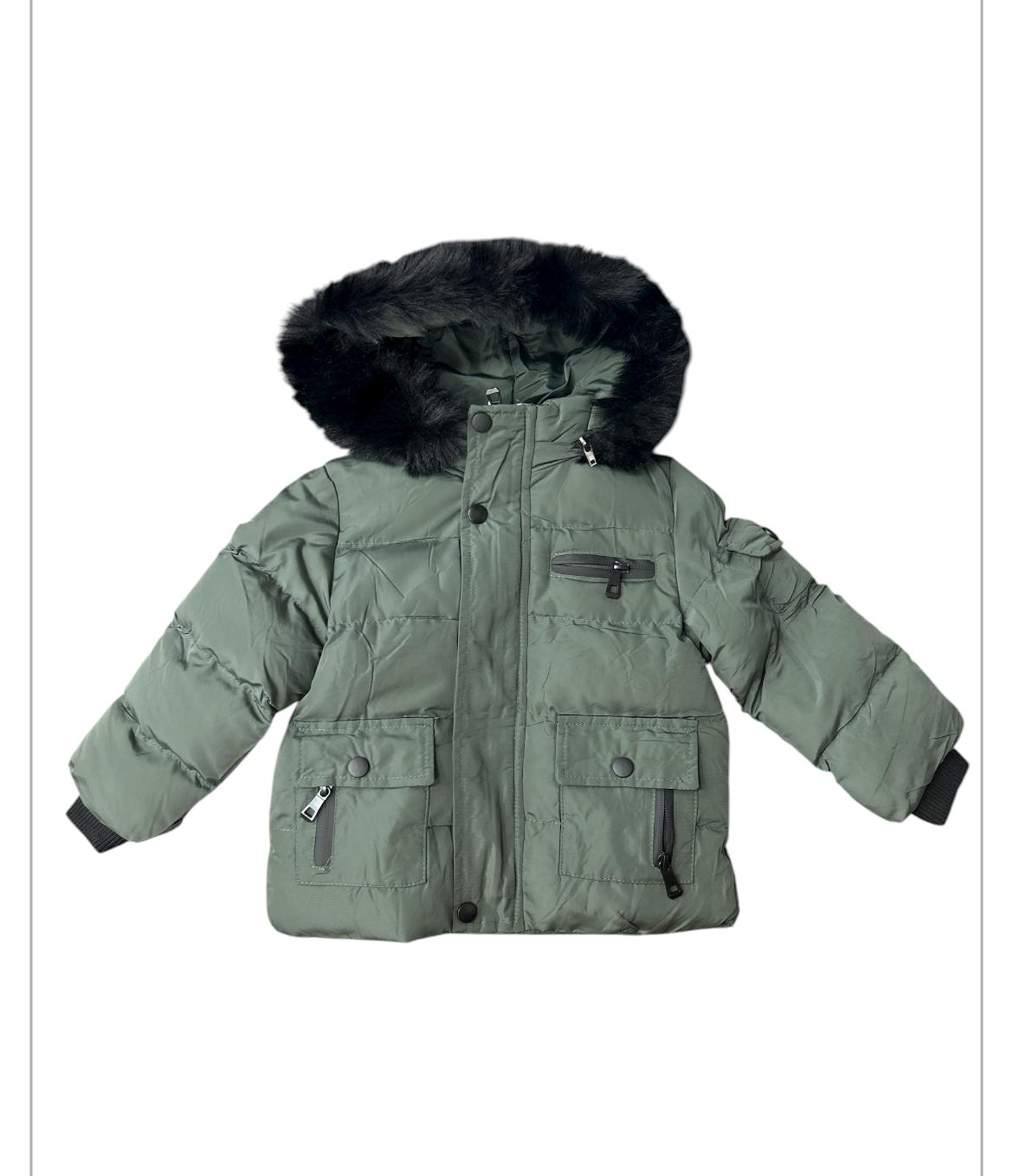 Giubbino bimbo con morbida pelliccia sul cappuccio, polsini e tasche con cerniera