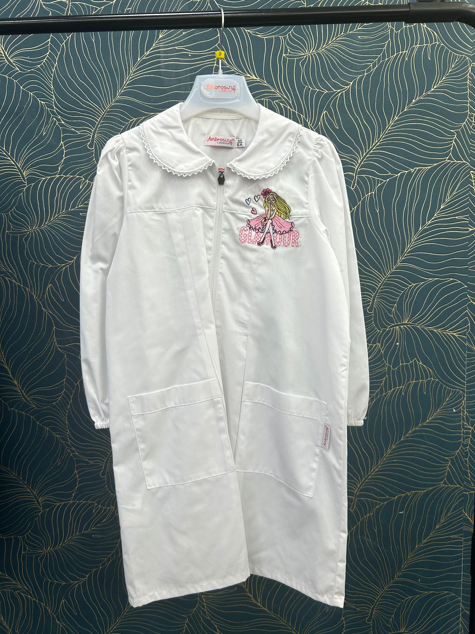 Grembiule ambrosino elementare , con bottoni oppure cerniera