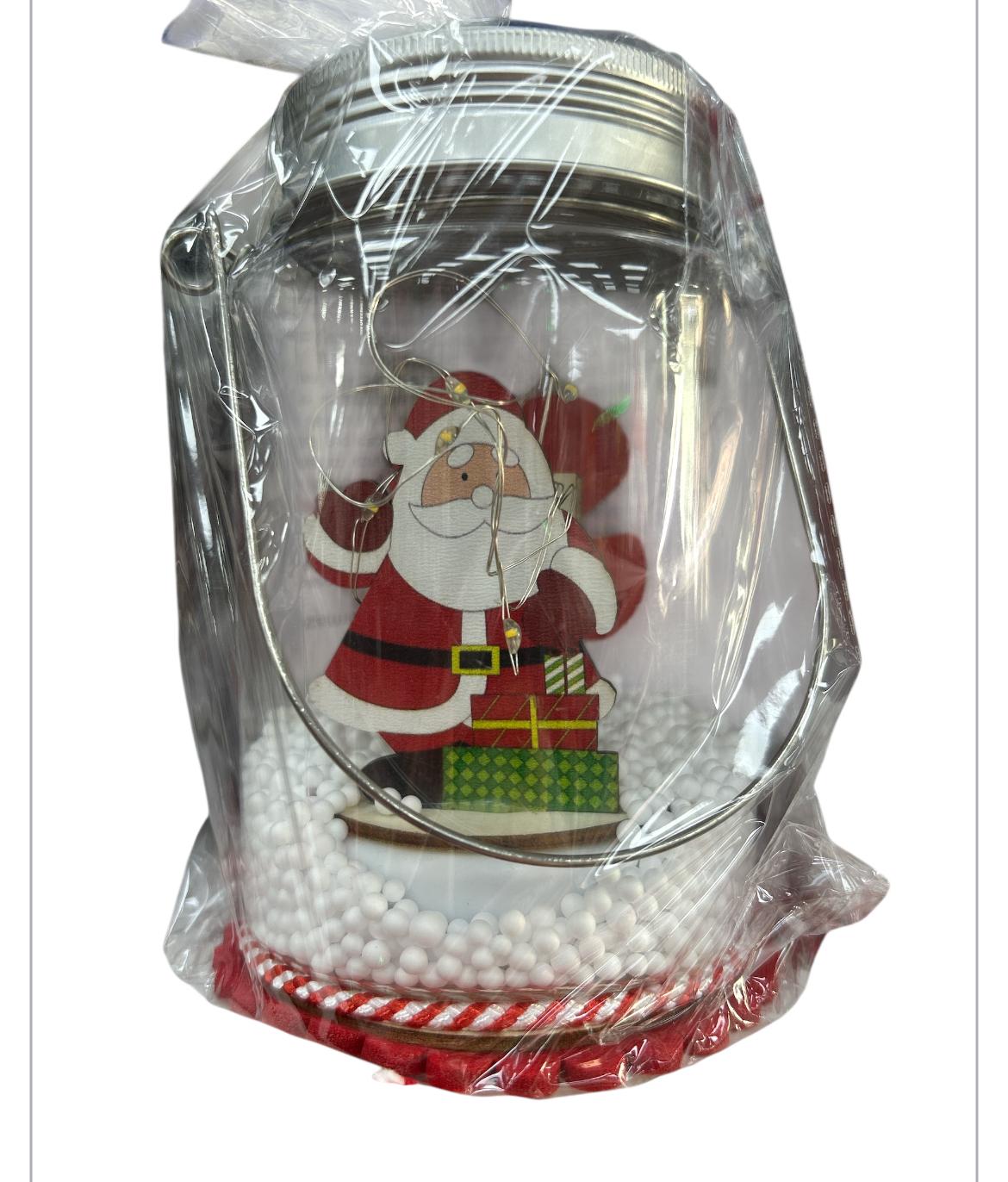 Lanterna natalizia babbo natale con palline ed illuminazione