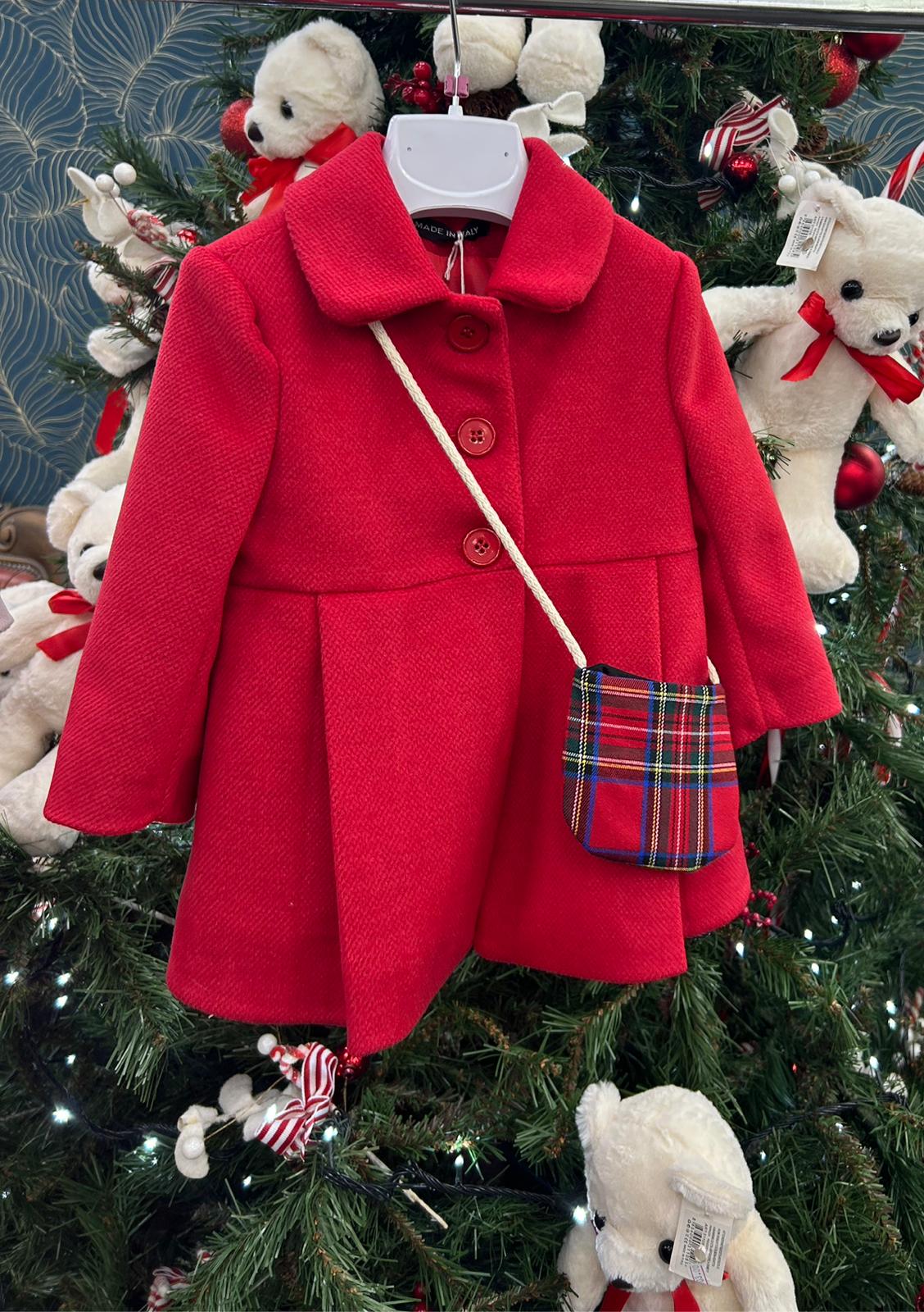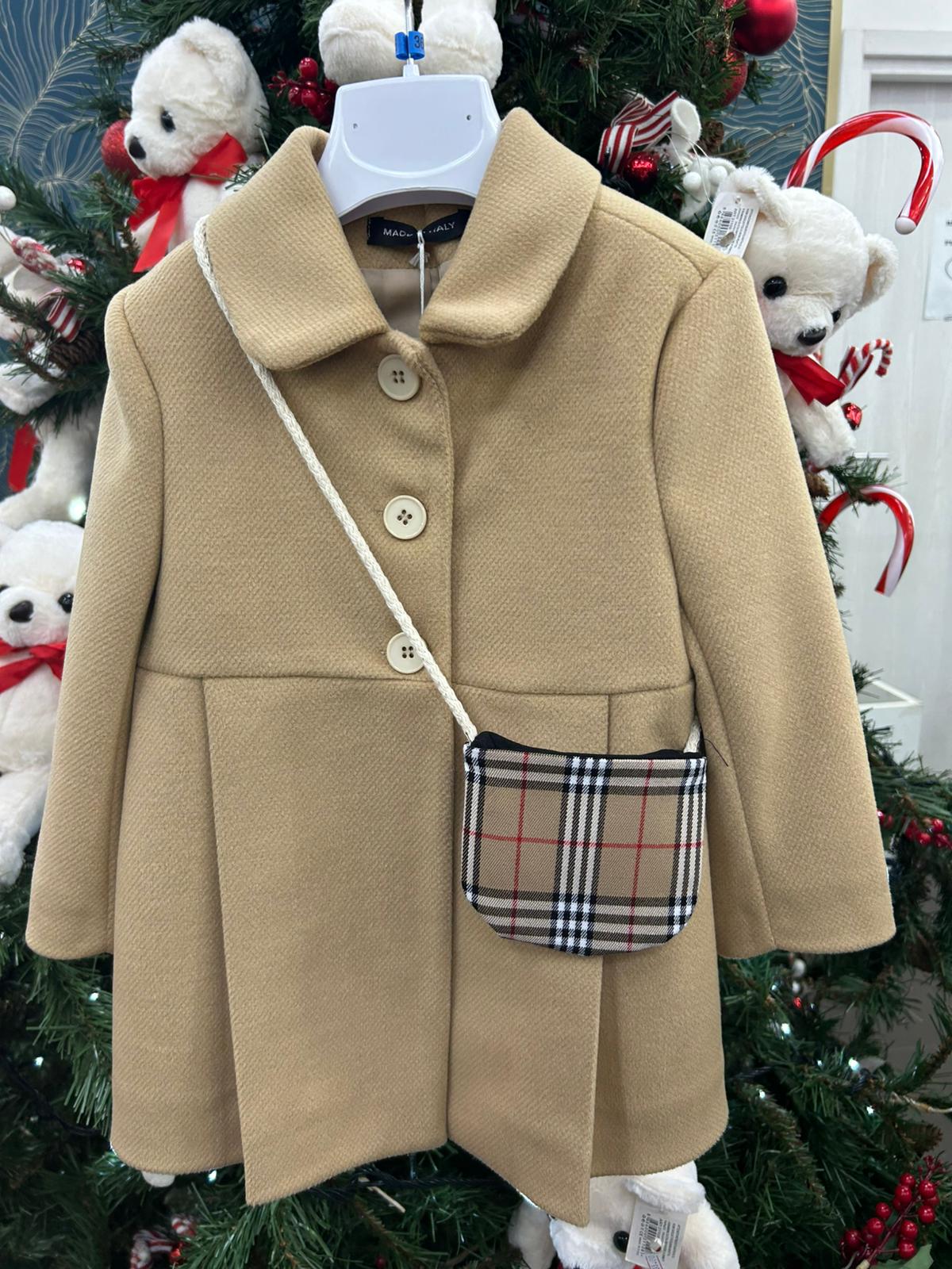 cappotto neonata con bottoni e borsetta abbinata