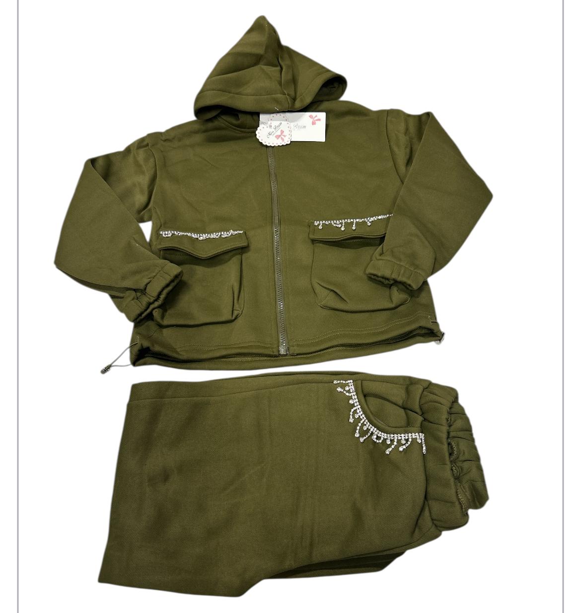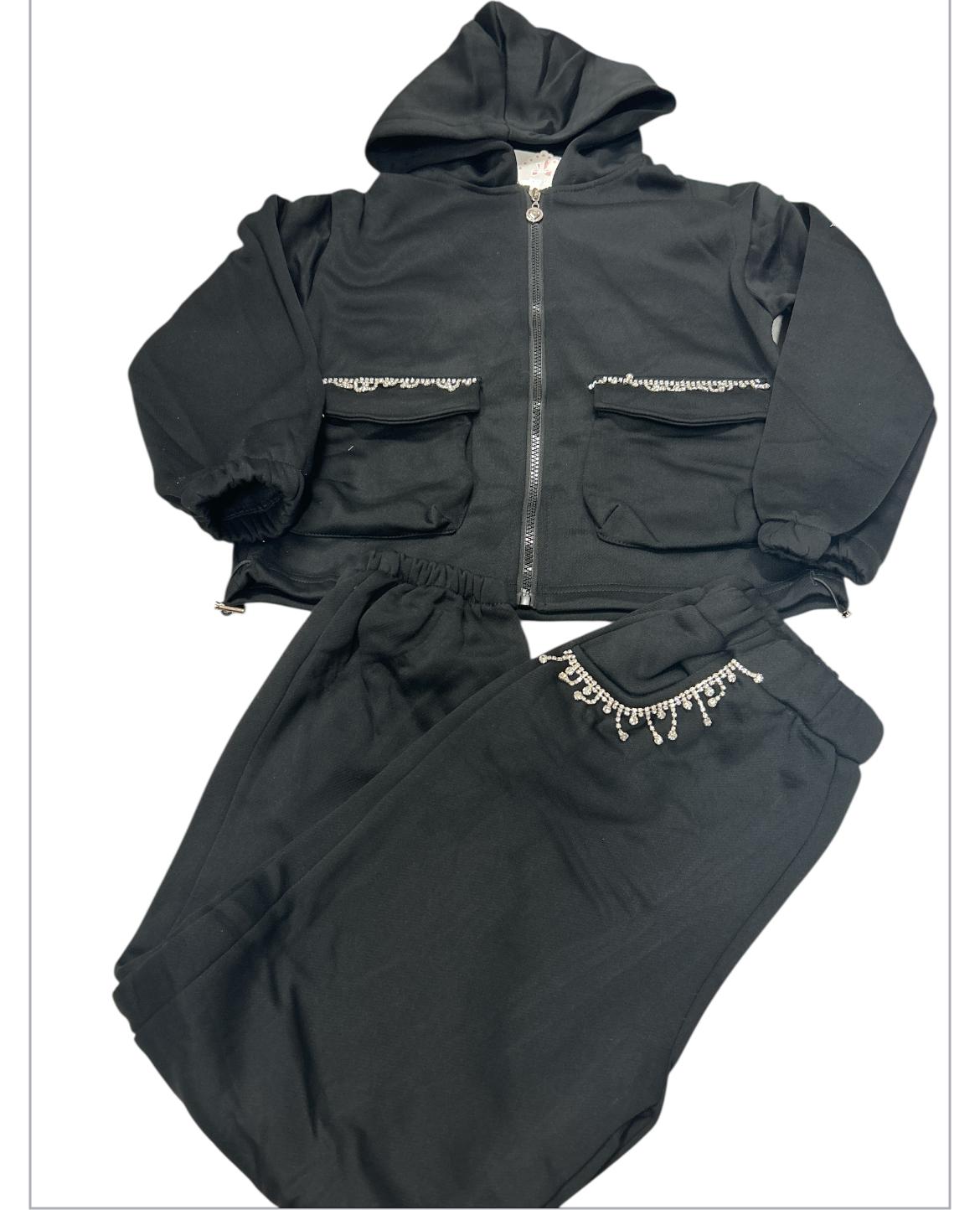 Tuta bimba brillantinata sulle tasche con elastico regolabile sui fianchii