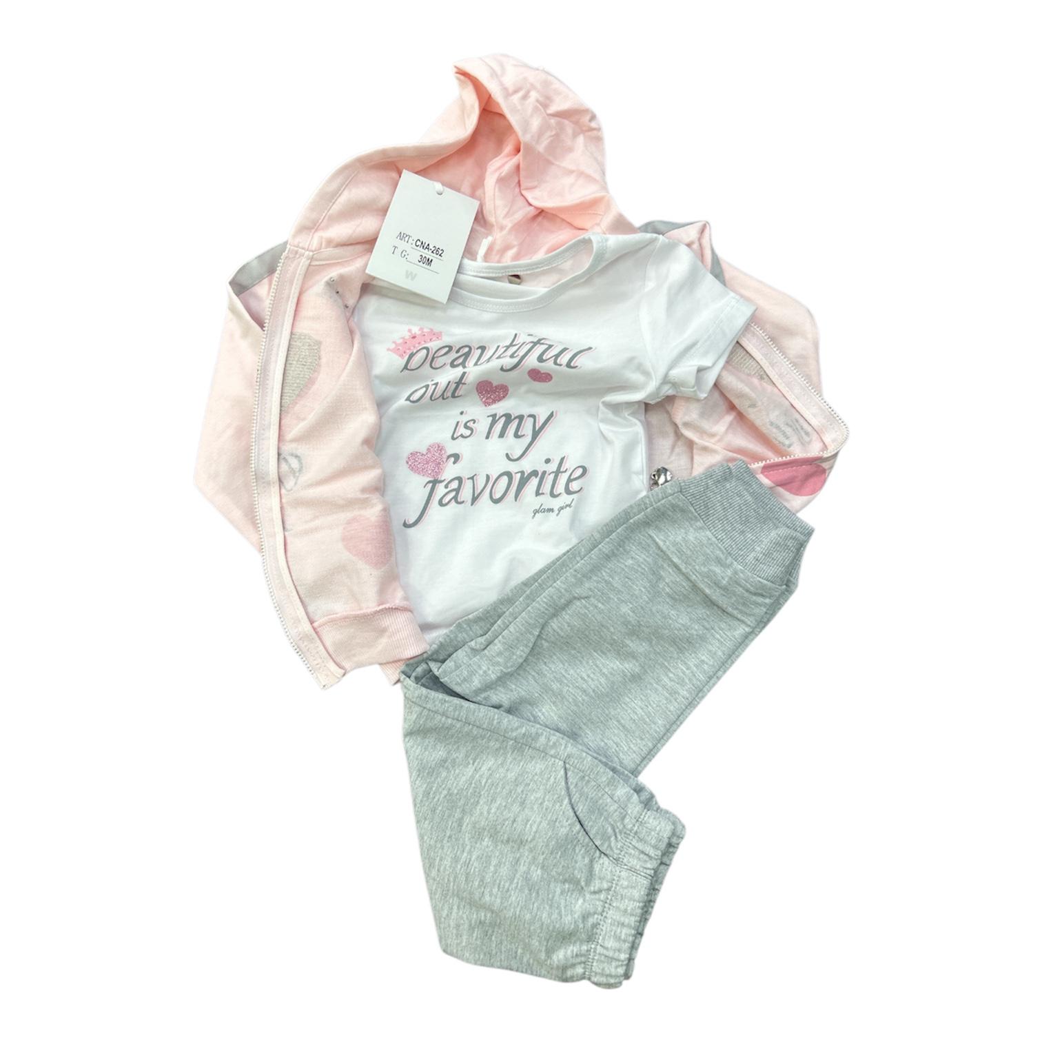 Tute neonati 3 pezzi cotone pantalone+ t shirt +felpa con cerniera